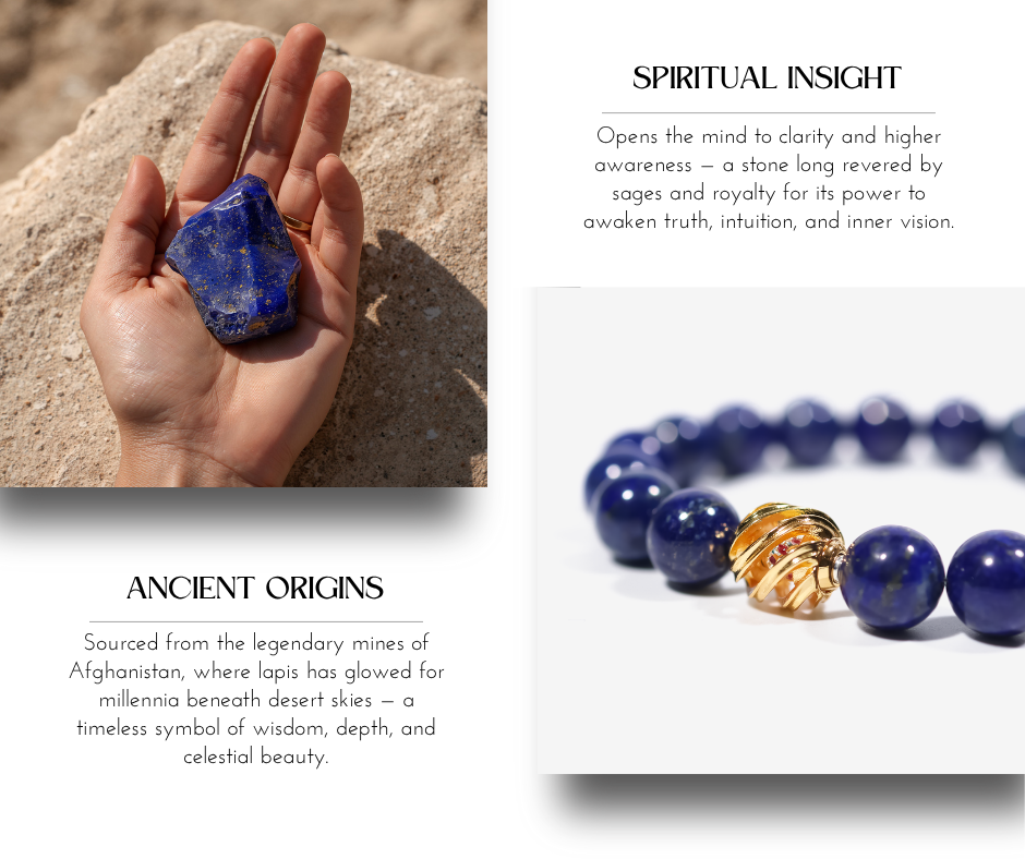 Lapis Lazuli – The Stone of Wisdom & Truth, enhancing clarity, intuition, and self-expression.