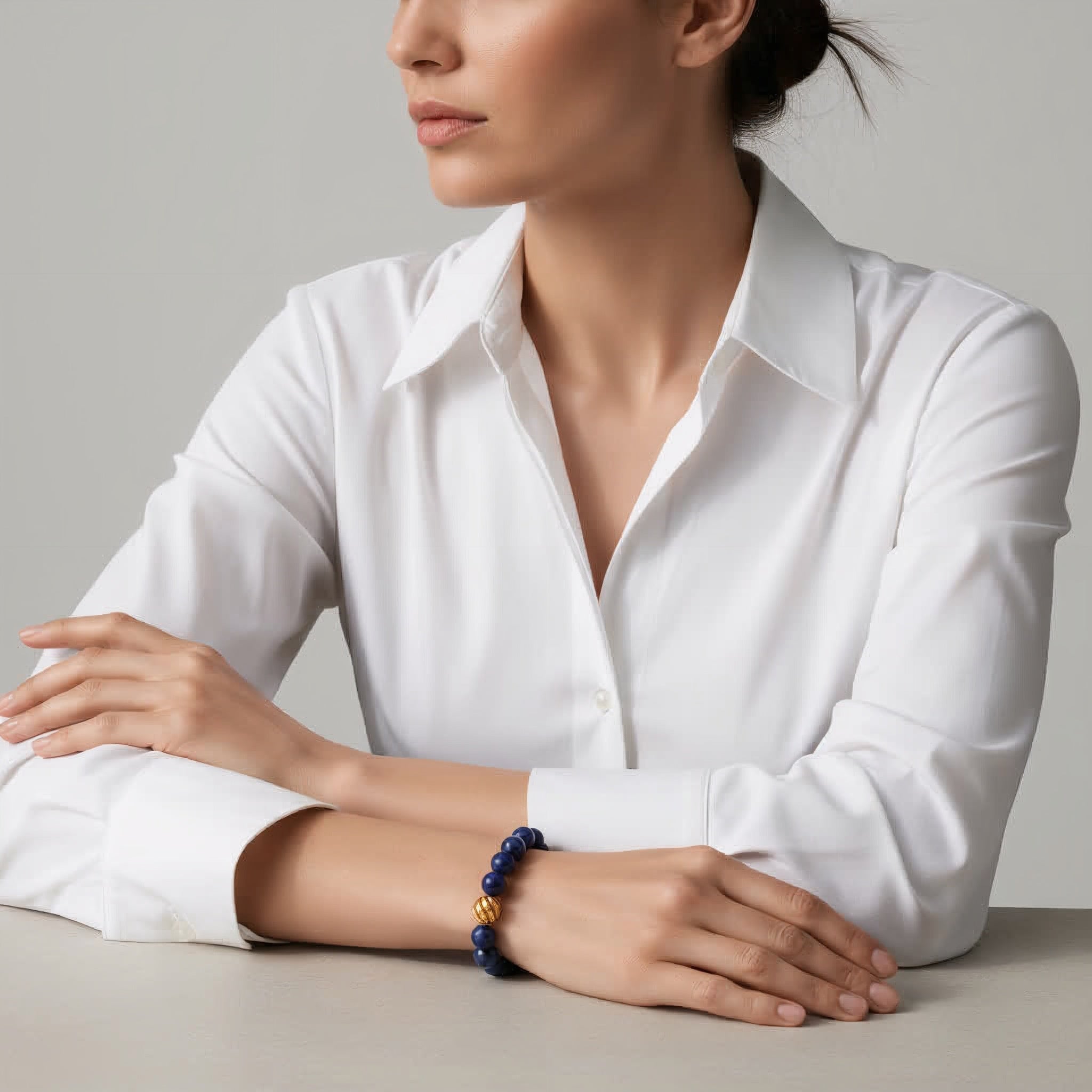 The Golden Lucky Lapis Bracelet unites the celestial depth of Lapis Lazuli with the radiant glow of gold.