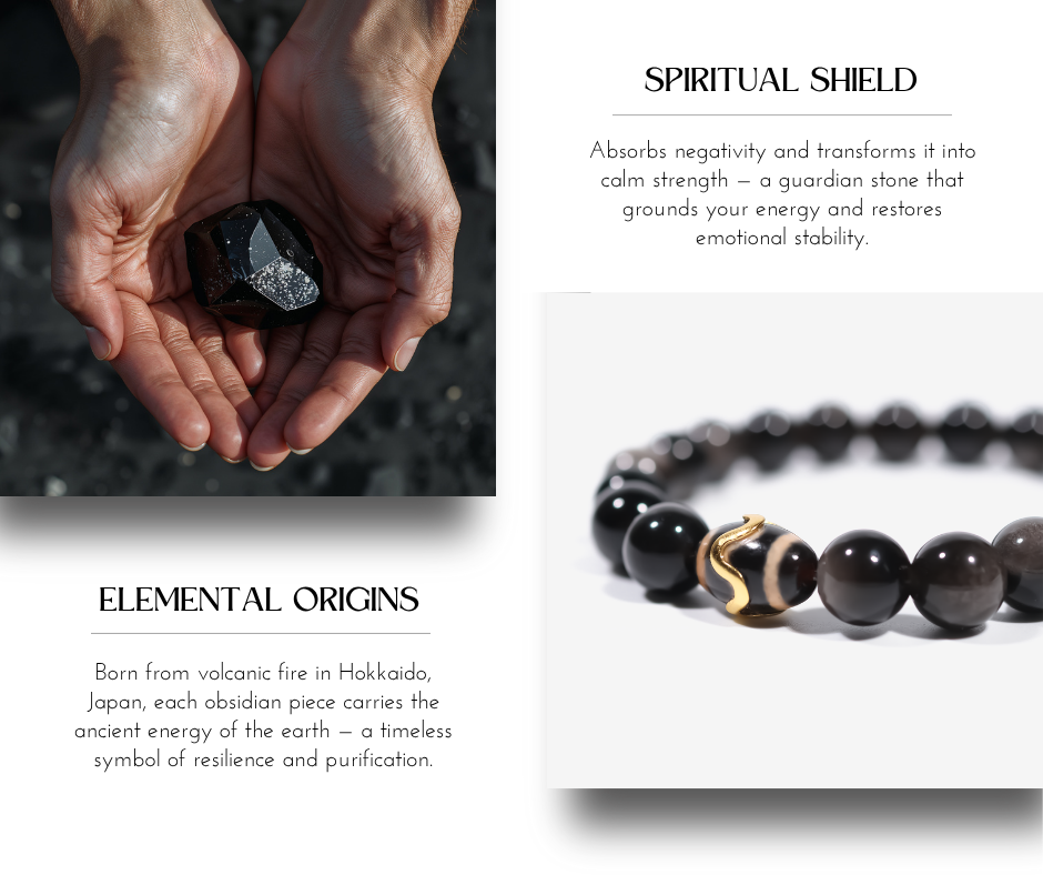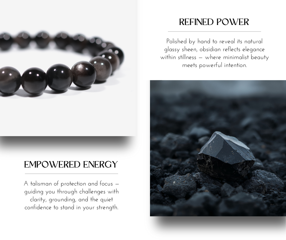 Slide the bracelet gently onto your wrist and let it settle naturally. Obsidian is often chosen on days when grounding, clarity, or emotional protection feels essential.