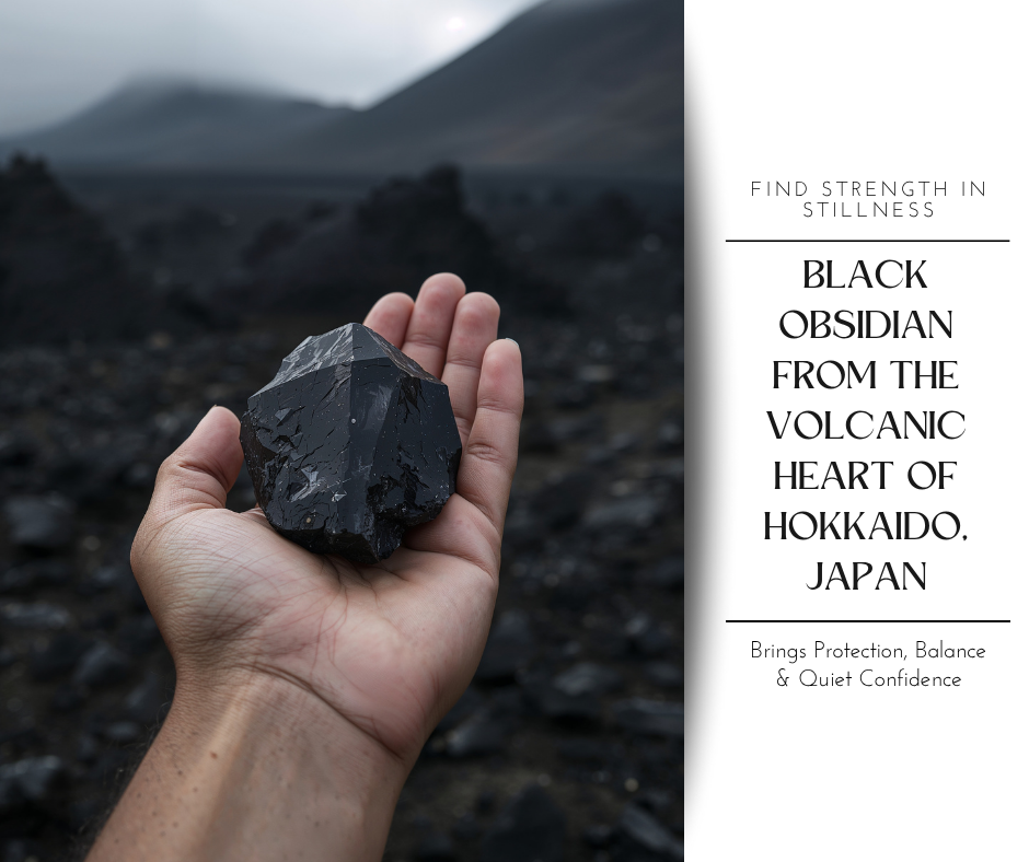 • Natural Hokkaido black obsidian with a deep, mirror-like finish