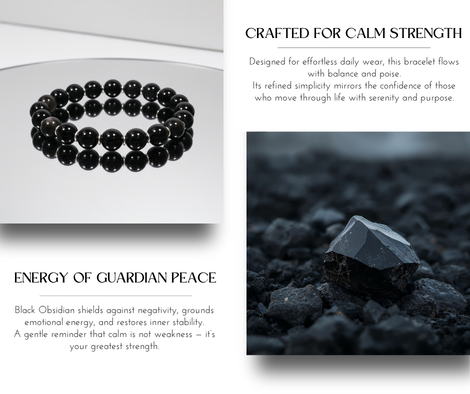 Gently slide the bracelet onto your wrist and let it settle naturally. Black Obsidian is often chosen on days when grounding, clarity, or emotional protection feels essential.